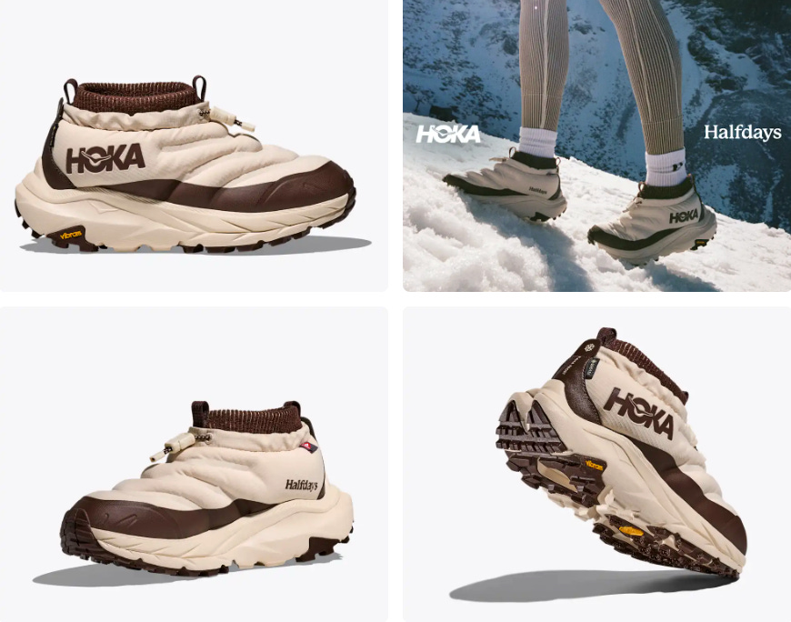 Halfdays teamed up with Hoka for limited-edition colorways of the puffer-style Kaha 2 Frost Moc GTX. The shoe come in Halfdays’ signature palettes (amethyst/glazed cherry + oat milk/spiked cocoa) and are rated to withstand temps down to -25°F. I’ve been fully on board with the puffer-shoe movement these past few seasons, so I’ll be setting an alarm for the launch tomorrow morning.
